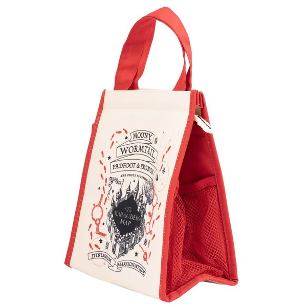 Sac à lunch en polyester. L’intérieur est fabriqué et doublé d’aluminium, ce qui permet de conserver la température des aliments pendant un certain temps. Il est doté d’une fermeture à glissière, d’une poche latérale pour les bouteilles et de poignées pour le transporter confortablement. Dimensions : 20 x 23 x 13 cm environ.