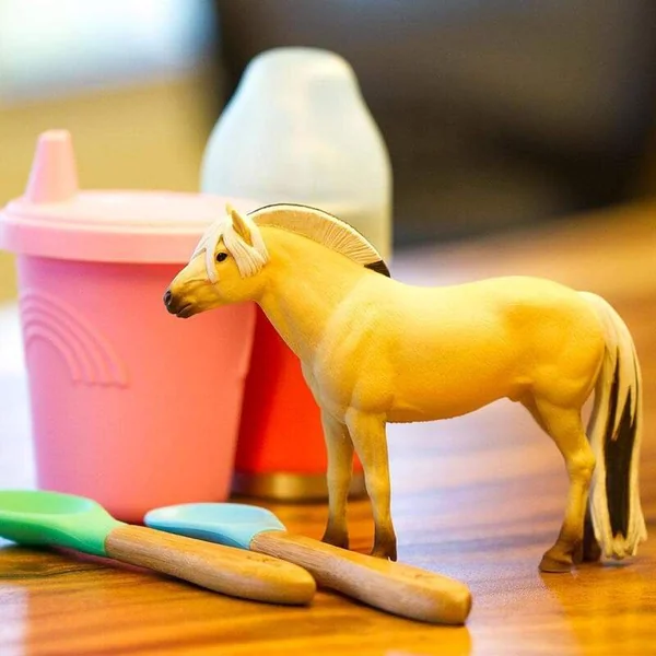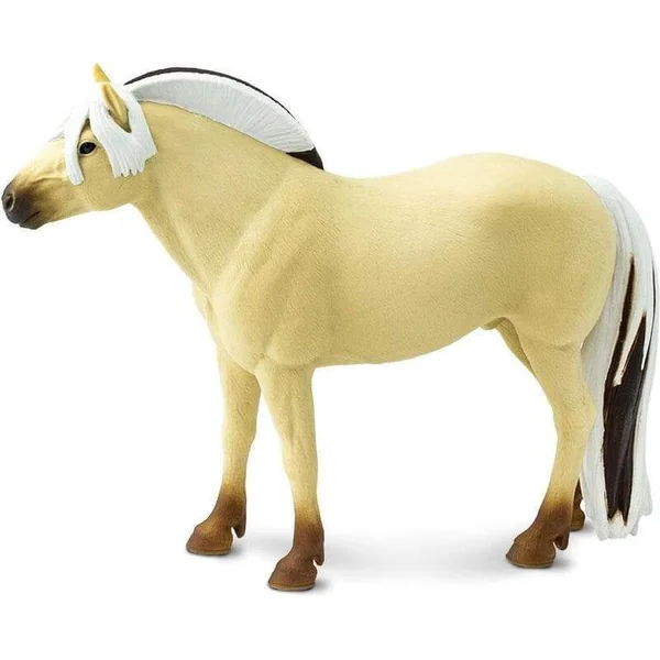 Taille et couleur : Mesurant 5,5 pouces de long et 3,75 pouces de haut, ce modèle est un peu plus grand qu’une canette de soda posée sur le côté. Tous les chevaux fjords, y compris notre figurine, ont une couleur sombre et des crinières et queues denses. Leurs crinières sont parfois coupées en forme de croissant pour mettre en valeur leurs cous robustes.