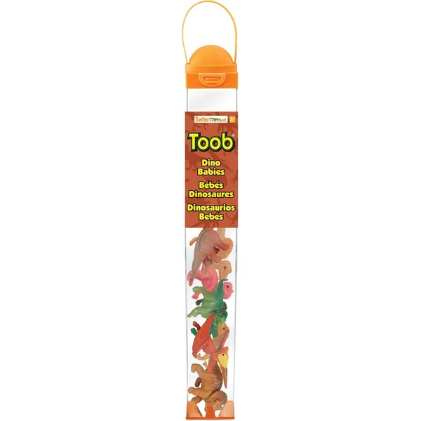 Mesurant 1,5 pouce (environ 3,8 cm) de long, 1,5 pouce (environ 3,8 cm) de large et 12,8 pouces (environ 32,5 cm) de haut, ce TOOB est un peu plus grand qu’une règle américaine standard et contient 10 petits dinosaures différents, dont la hauteur varie de 1,25 à 3,75 pouces (environ 3,2 – 9,5 cm).