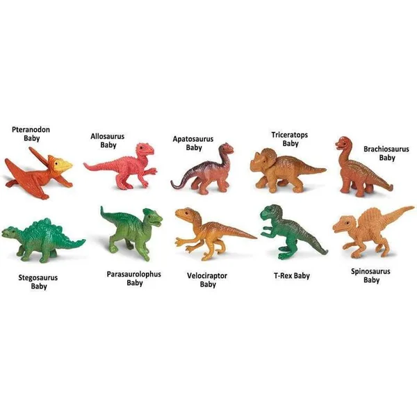 Ce paquet (TOOB) contient des bébés : Ptérodactyle, Allosaure, Apatosaure, Tricératops, Brachiosaure, Stégosaure, Parasaurolophe, Vélociraptor, T-Rex et Spinosaurus.
