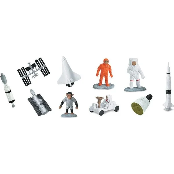 Partez vers les étoiles avec ce Safari Space Toob ! Ce groupe comprend 2 astronautes, le soldat Hama (le premier singe de l’espace), la fusée Saturn V, la capsule Gemini, le vaisseau spatial Apollo, le rover lunaire, la navette spatiale, le télescope spatial Hubble et un satellite.