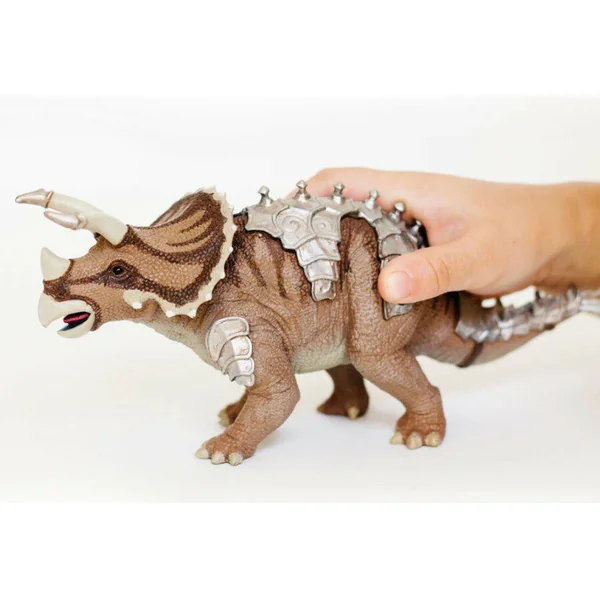 Tricératops fantastique avec armure et armement défensif renforcé. Les enfants peuvent développer le jeu et les histoires avec ce robuste dinosaure guerrier.