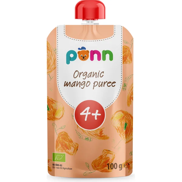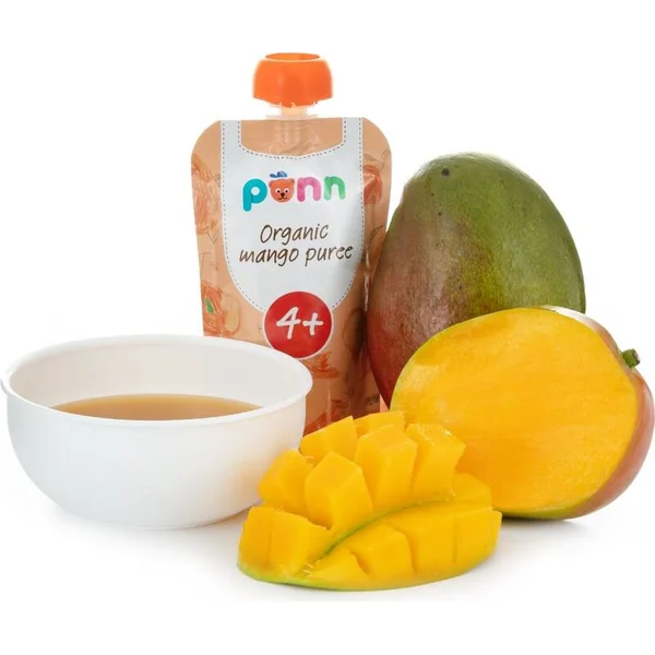 - Le sachet avec un bouchon pratique contient une purée fabriquée à partir de 100% de mangue bio et rien d’autre.