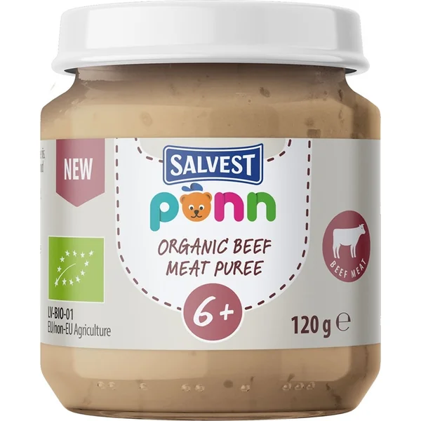 La purée de bœuf Salvest Ponn avec une texture crémeuse est fabriquée à partir d’ingrédients biologiques et permet aux parents d’ajouter facilement de la viande au régime alimentaire de leur bébé ! La purée de bœuf contient 40 % de viande et est destinée à être mélangée avec un peu de purée de légumes dans un rapport de 1:2. Si nécessaire, la quantité de purée de légumes peut être augmentée.
