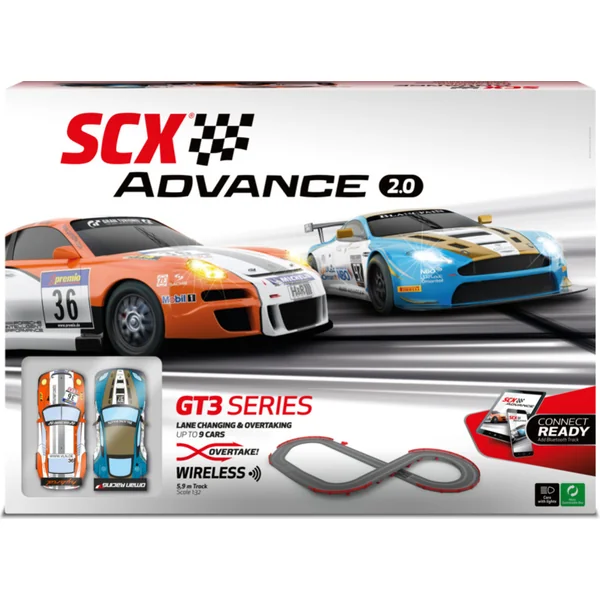 Les pistes SCX Advance sont numériques, ce qui permet, contrairement à une piste analogique classique, des dépassements mutuels et de nombreuses autres fonctions. L’échelle 1:32 est la taille idéale pour des courses réelles et palpitantes, où vous pourrez pleinement apprécier et maîtriser la dynamique des voitures. Les pistes SCX 1:32 ont des pièces de piste identiques et il est possible d’améliorer et d’élargir la piste. De plus, les pistes SCX Advance peuvent être connectées à un téléphone ou une tablette via une ligne Bluetooth de tuning (vendue séparément). Vous aurez alors à votre disposition un compteur de tours, la création de courses, le réglage des voitures, ou vous pourrez partager les résultats. Si vous complétez la ligne Bluetooth avec un stand de ravitaillement, vous pourrez vivre des courses palpitantes avec gestion du carburant et ravitaillement.