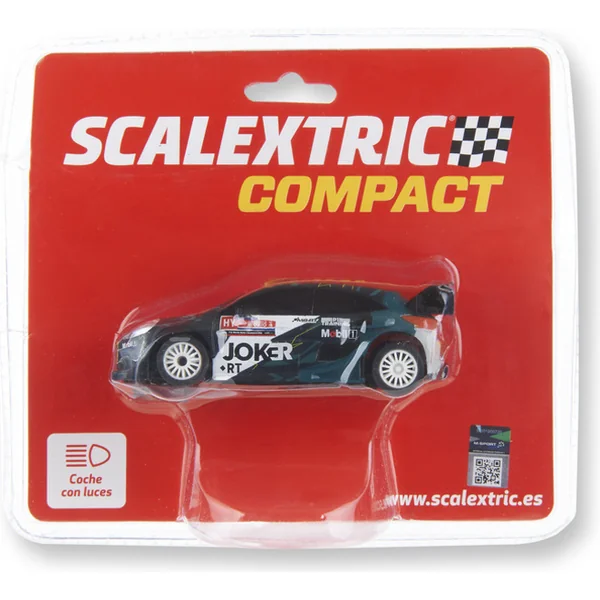 Voiture de circuit SCX Compact Ford Puma WRC Heller à l’échelle 1:43, pour circuits SCX Compact. La voiture est équipée de lumières LED.