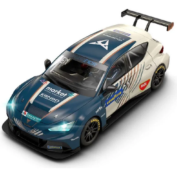 Voiture de circuit SCX Original Cupra E-Racer Gene au 1:32, pour les circuits analogiques SCX Original. La voiture est équipée de lumières LED.