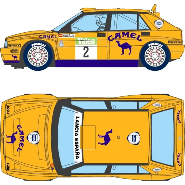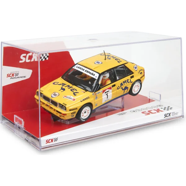Voiture de circuit SCX Original Lancia Delta Integrale Servia 88 à l’échelle 1:32, pour les circuits analogiques SCX Original. La voiture est équipée de lumières LED.