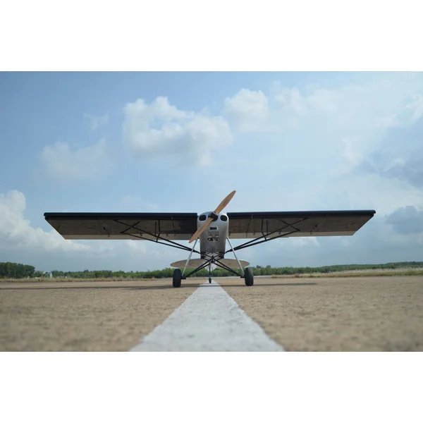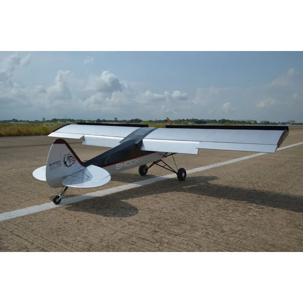 Sur le plan mécanique, le Shock Cub ne fait pas de compromis. Son train d’atterrissage en aluminium robuste est accompagné de gros pneus de 5,5 pouces pour une atterrissage tout en douceur. De plus, il dispose d’une jambe de force de queue usinée en aluminium CNC, apportant une solidité supplémentaire. Il est conseillé de l’équiper d’un moteur thermique de 35 à 50cc pour une performance optimale.