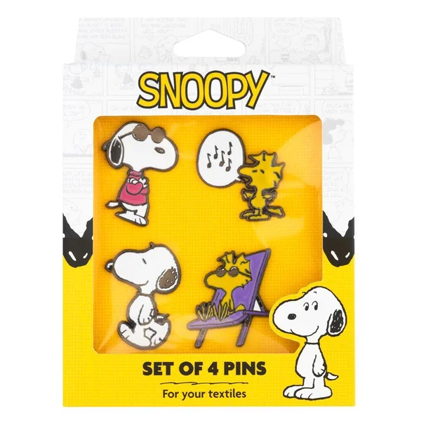 Lot de quatre pins fabriqués en alliage de zinc avec finition émaillée. Ils sont dotés d’une pointe à l’arrière pour les insérer dans le tissu et d’une broche papillon métallique, qui se place à l’extrémité de la pointe pour assurer leur fixation. Le pin se libère en appuyant sur le mécanisme de la broche. Dimensions : 5 x 5 cm environ.