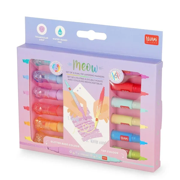 SET DE 6 FEUTRES DOUBLE POINTE MEOW