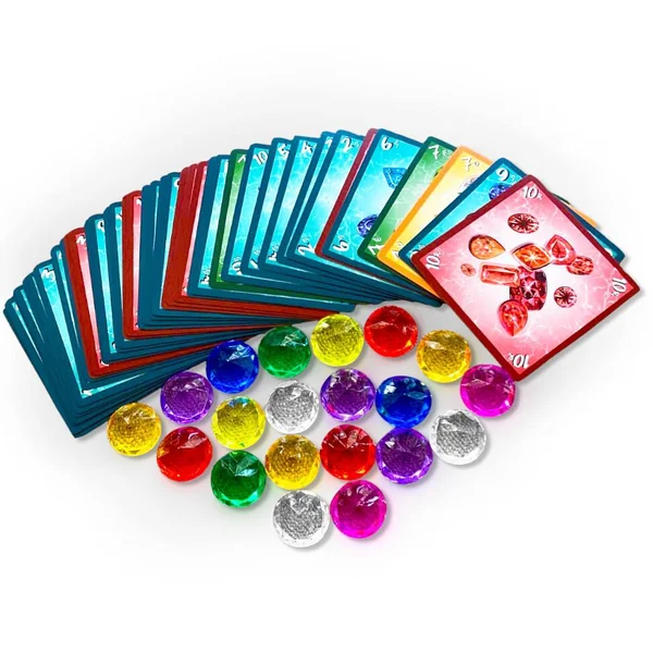 Une partie se joue en plusieurs manches. Le jeu est composé de 40 cartes et d’un sac de pierres précieuses qui sont les points de victoire. Les cartes sont réparties en 4 catégories : 1 carte diamant, 3 cartes émeraudes, 9 cartes rubis et 27 cartes saphirs. 4 cartes sont posées face visible au centre du jeu au début de chaque manche. Ce sont des cartes à prendre. Les joueurs prendront et poseront des cartes sur la table. Ainsi, les cartes à prendre vont varier pendant la manche.