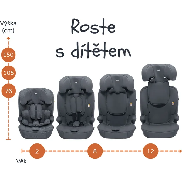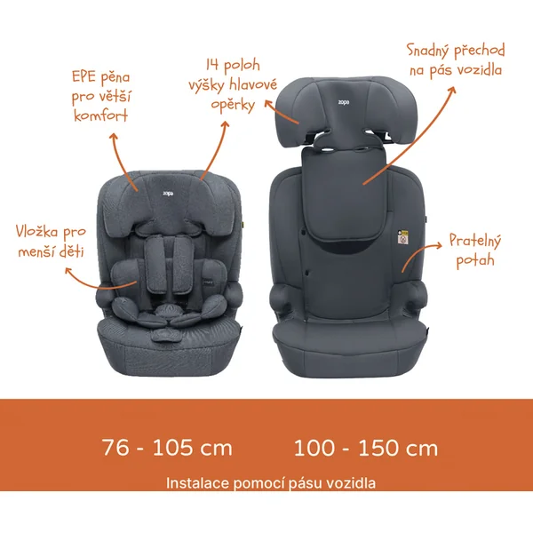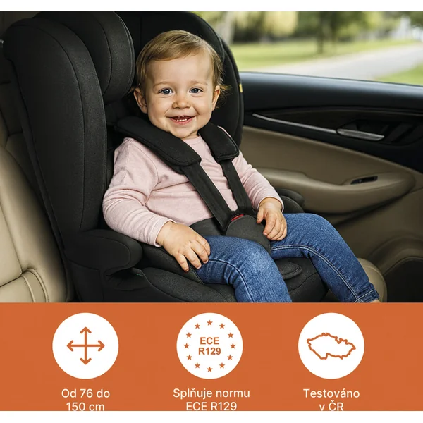 Zopa Alfa R129 est un siège auto pratique et fiable, qui grandit avec votre enfant de l’âge de la petite enfance jusqu’à 12 ans. Il est destiné aux enfants mesurant entre 76 et 150 cm et respecte la norme de sécurité stricte ECE R129 (i-Size). Grâce à son installation avec un ceinture de sécurité à trois points du véhicule, le siège auto est adapté à tous les voitures, qu’elles soient équipées ou non d’un système Isofix, ce qui en fait une solution universelle pour toute la famille.