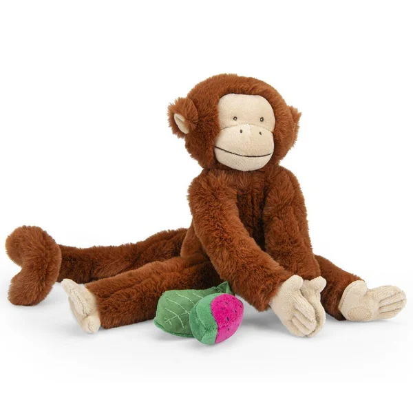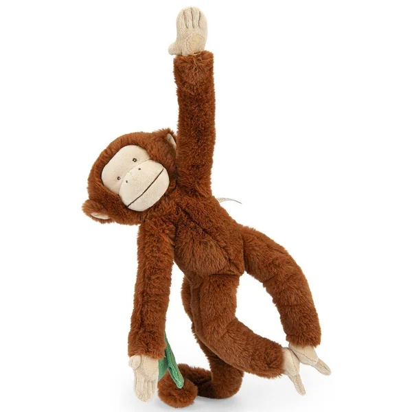 Voilà Mochica, le singe farceur aux multiples activités : glong fait la clochette, dilling les grelots et scritch la feuille. Avec ses attaches velcro, positionnez-le où vous le voulez ! Tout doux, il fera le bonheur des enfants pour de tendres câlins.