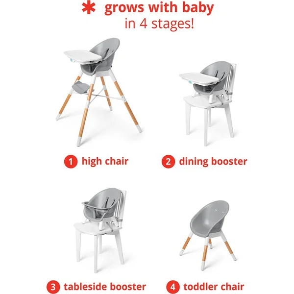 La chaise haute EON 4 en 1 s’adapte à l’âge et aux besoins de votre enfant afin que vous puissiez l’utiliser pendant plusieurs années. Son design élégant, moderne et compact s’intègre parfaitement dans n’importe quel intérieur. Skip Hop EON a un design innovant avec des pieds en bois de hêtre, un siège gris élégant, un plateau et un repose-pieds gris à 2 positions. Le plateau de la chaise haute est amovible et réglable. Vous pouvez utiliser la chaise de 4 manières différentes : comme chaise haute jusqu’à un poids de 15 kg, comme rehausseur avec plateau, comme rehausseur indépendant pour manger à table et comme chaise ou fauteuil pour enfants jusqu’à 5 ans ou 36 kg.