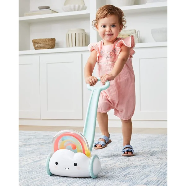 Jouet classique à pousser avec un design joyeux de nuage et d’arc-en-ciel avec des perles. Il offre aux enfants un soutien joyeux et amusant lors de leurs premières aventures en marchant. L’arc-en-ciel avec des balles colorées récompense l’enfant pour chaque pas avec des sons éclatants amusants. Un excellent moyen de développer la confiance en marchant, la motricité globale, l’équilibre et d’autres compétences tout en jouant.