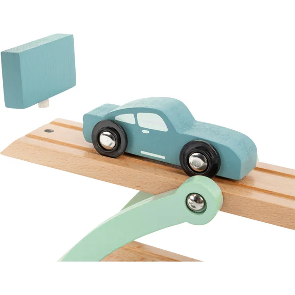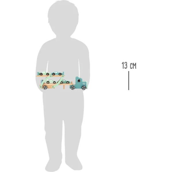 Les grandes roues sont là ! Ce camion avec remorque pour voitures sort des grands camions intercontinentaux et s’inspire d’un schéma de couleurs « bleu acier ». Le transporteur est entièrement fabriqué en bois naturel. Grâce à cela, il est idéal pour une expérience de jeu à long terme.