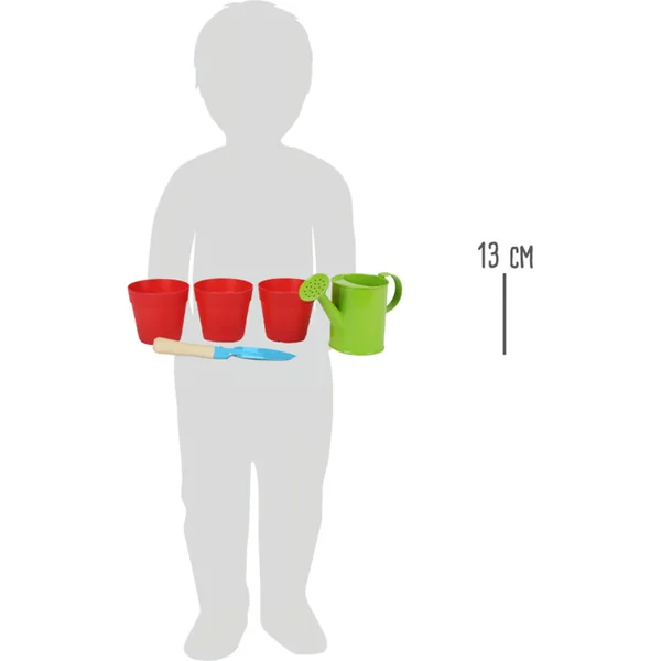 Les jeunes jardiniers apprendront à travailler avec la nature et à l’apprécier. La petite pelle est fabriquée en bois massif et en métal, et elle est facilement maniable pour les enfants. Les pots ont des trous au fond pour drainer l’excès d’eau. Quelles plantes allez-vous planter ?