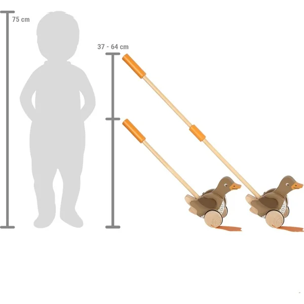 La tige en bois, qui est réglable en hauteur, offre un soutien lors des premiers pas hésitants. L’équilibre et le mouvement sont des compétences que ce cavalier aidera les enfants à développer. Les enfants peuvent pousser ou tirer le canard à la maison comme à l’extérieur. Suivez votre enfant alors qu’il apprend et rit à chaque pas qu’il fait avec ce compagnon en bois.