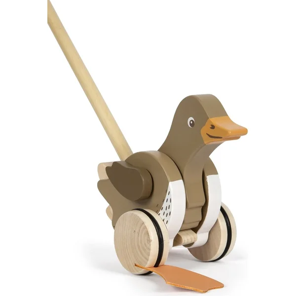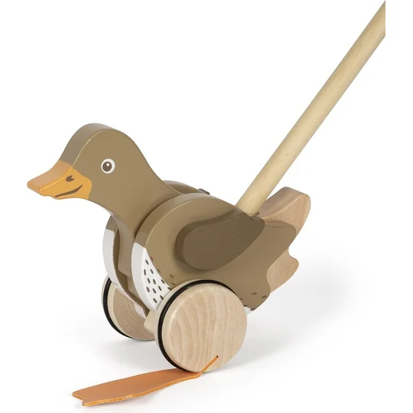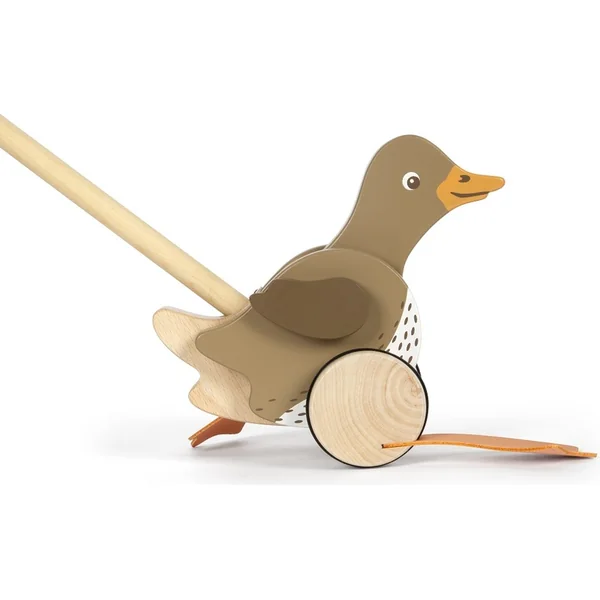 Nous vous présentons le canard en bois à tirer sur tige – un petit assistant pour les premiers pas de votre enfant ! Ce jouet en bois robuste avec des pattes oscillantes est conçu pour illuminer les yeux de votre petit explorateur et éveiller en lui le désir d’explorer le monde qui l’entoure. Les joyeux bruits de cliquetis et le mouvement de la tête du cavalier apporteront de la joie au mouvement et au jeu.