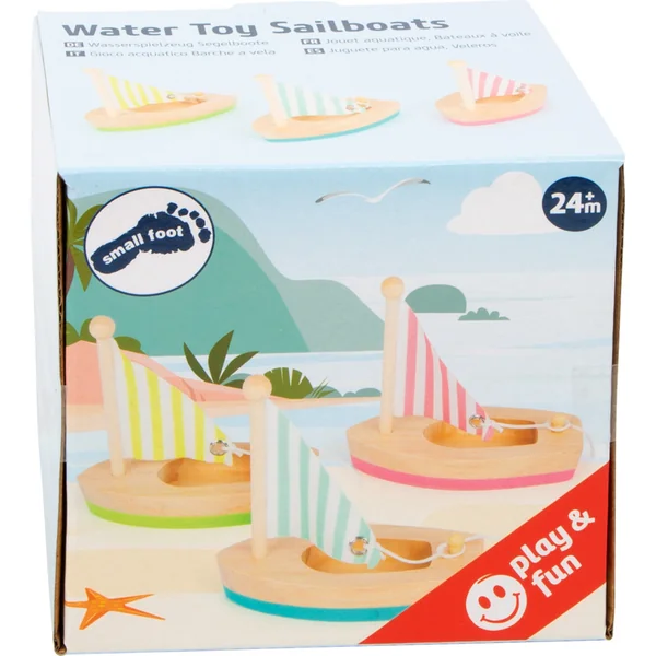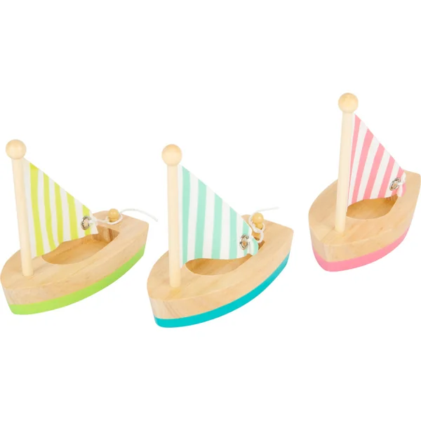 Les voiliers sont spacieux, de sorte qu’ils peuvent y placer leurs propres figurines. Les voiles peuvent être abaissées si nécessaire, puis à nouveau attachées. Les jouets aquatiques en bois sont une alternative plus écologique aux jouets en plastique et en caoutchouc.