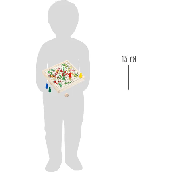 Quatre joueurs, un dé et un plateau de jeu avec des serpents et des échelles. Qui atteindra le 100 le plus rapidement ? Ce jeu de société compact est fabriqué en bois 100 % FSC. Lorsque vous atterrissez sur une case serpent ou échelle, le chemin vers la destination devient plus long ou plus court. Ce jeu de société est parfait pour les voyages. Les pièces sont soigneusement rangées à l’intérieur de la boîte, qui sert de plateau de jeu.