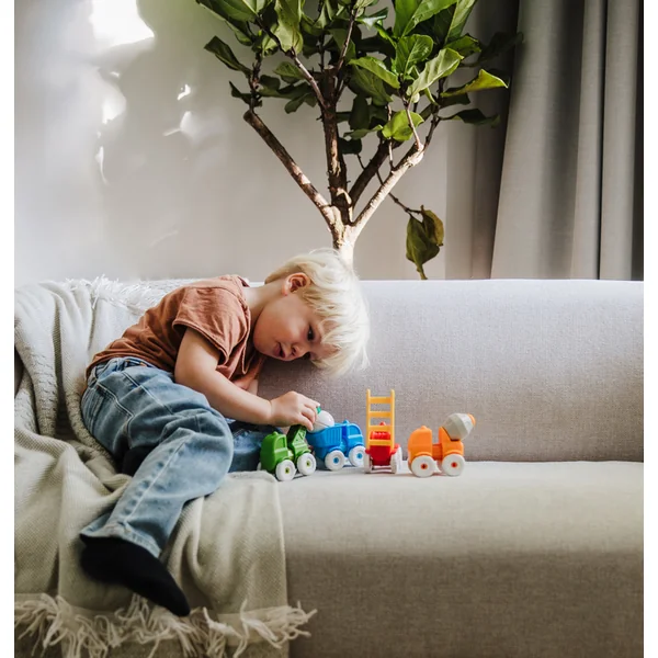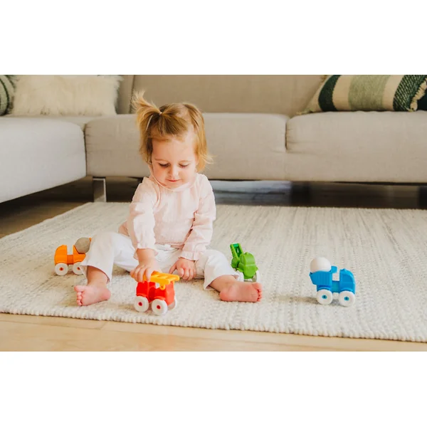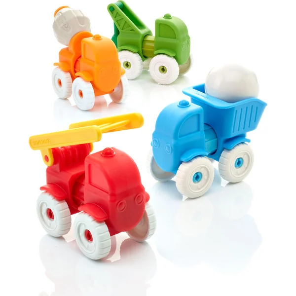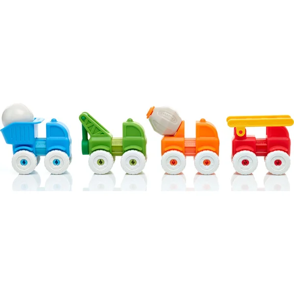 - Les enfants peuvent facilement assembler 4 voitures différentes : un camion de pompiers, un camion, un malaxeur et un chargeur.