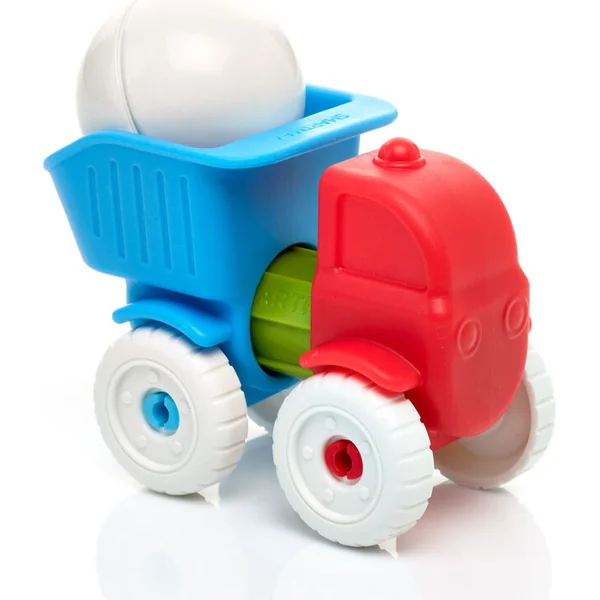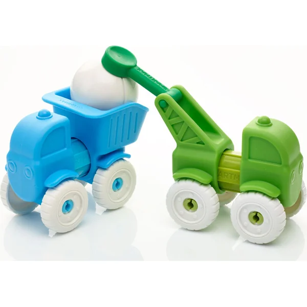 - Ils ont également à leur disposition une boule magnétique, qui sert non seulement de chargement pour le camion, mais permet aussi d’utiliser l’ensemble comme un premier petit jeu de construction.