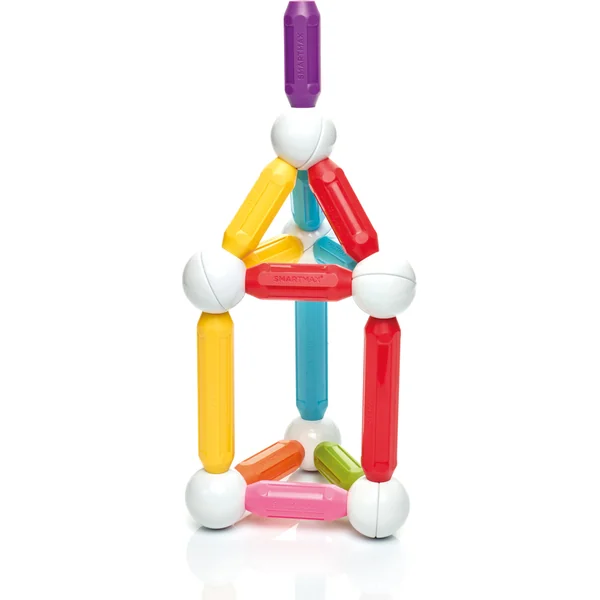 Ce paquet de la construction magnétique belge SmartMax, contenant au total 42 pièces (12 barres longues de 12 cm, 18 barres moyennes et 12 billes)