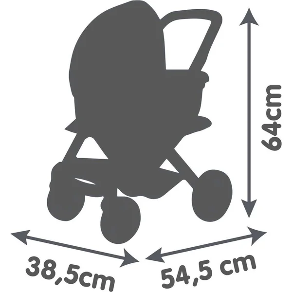 Chariot combiné pour poupées jusqu’à 42 cm. Avec panier amovible. En installant la nacelle, vous obtenez une poussette profonde ou vous pouvez l’utiliser uniquement comme poussette sportive. La nacelle peut également être utilisée seule.