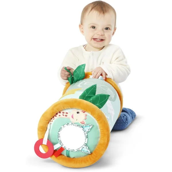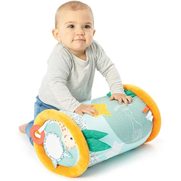 Ce rouleau à rebords molletonnés est léger, rapide à gonfler et facile à transporter. Rollin’ Sophie la girafe est conçu avec des couleurs vives, différentes matières de qualité telles qu’une housse en tissu amovible et lavable.