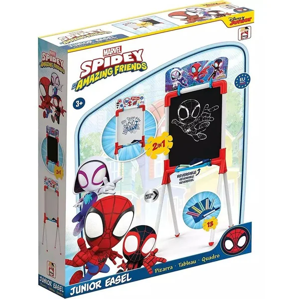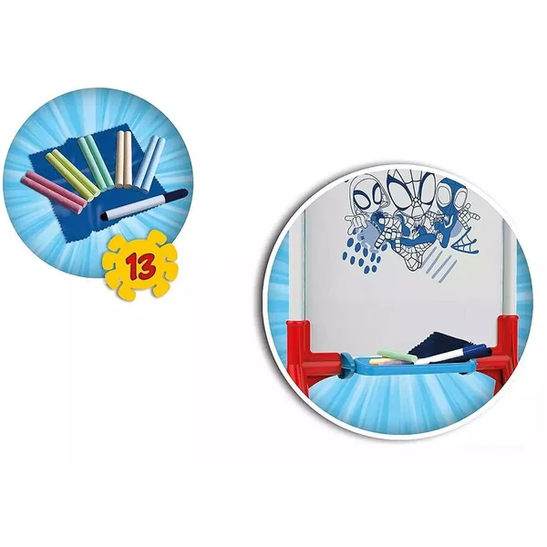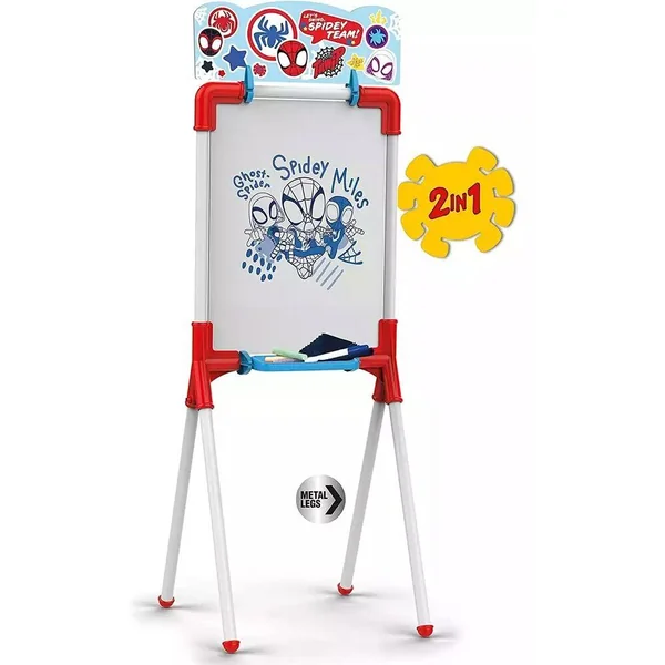 Mini Tableau Spidey and his amazing friends. Réversible 2 en 1. Pied en métal. 12 accessoires (craies, feutre, chiffon).