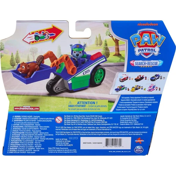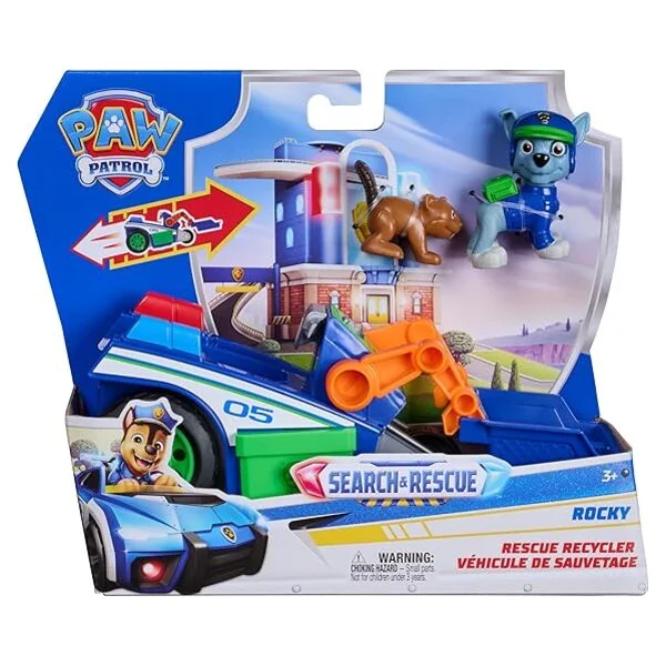 - Contenu de l’emballage : véhicule de sauvetage, figurine de Rocky en uniforme de sauvetage, figurine d’écureuil