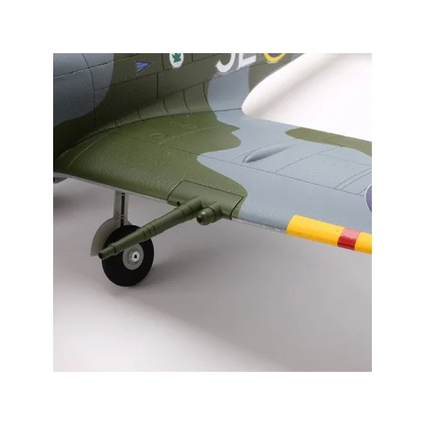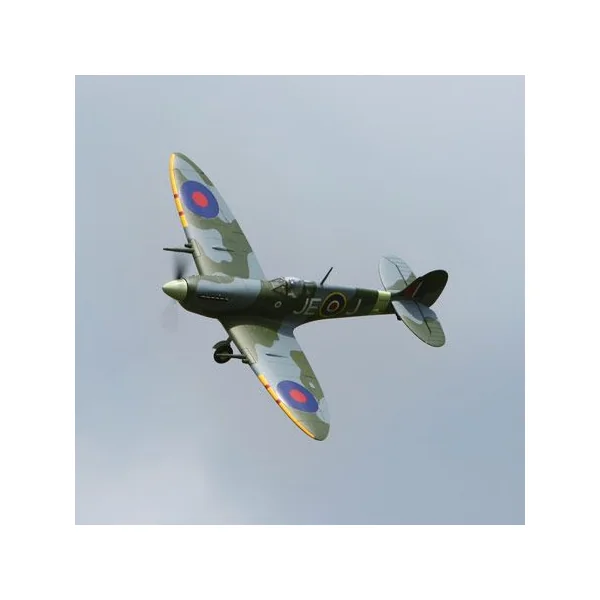 Votre Spitfire BNF est livré complet evec moteur, controleur et servos installés, ne manque que récepteur, chargeur équilibreur et une batterie batterie 3S Li-po 2200mah. Bind and Fly : synchronisez simplement votre radio-commande spektrum avec le récepteur déjà installé dans l’avion, une simple DX6 suffit ! • Envergure: 1100mm Fonction RC : – Direction |