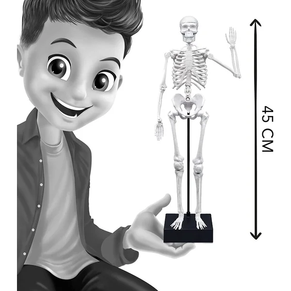 Les os ont une structure et une couleur réalistes. Le squelette est entièrement articulé et l’enfant peut le positionner dans n’importe quelle posture.