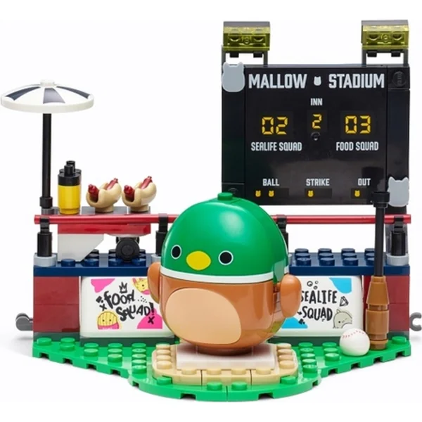 Ce kit de construction original apporte le ‘Mallow Stadium’ avec un tableau de score, un stand de hot-dogs et tout ce qui fait l’atmosphère d’un vrai match.