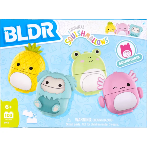 Chaque personnage a un ventre compressible grâce à la technologie SquishBrik, ce qui le rend semblable à un vrai Squishmallows ! Les pièces BLDR sont compatibles avec toutes les grandes marques de blocs de construction, te permettant de créer, combiner et étendre ton monde sans limites.