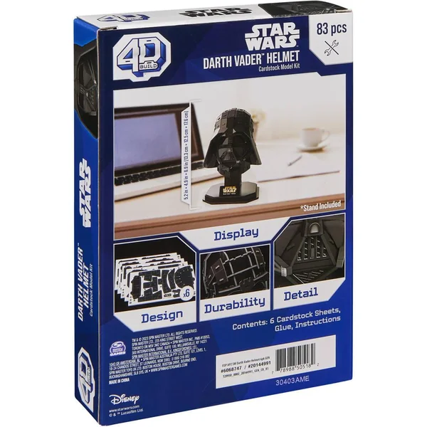 Une réplique ultra-réaliste à construire soi-même – Un système de construction simple avec un haut niveau de détails graphiques permettant de jouer ou d’exposer ses héros préférés – Ce modèle Casque Dark Vador de l’univers Star Wars est composé de 83 pièces, pour une durée de montage d’environ 1 à 2 heures – Dimensions du modèle monté : Hauteur 17 x Longeur 12,5 x Profondeur 12,5 cm – 6 planches et 1 notice de montage fournies. Socle d’exposition inclus.
