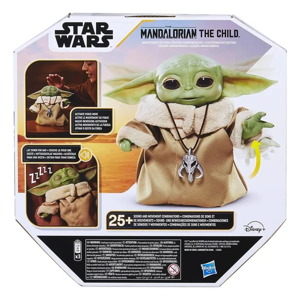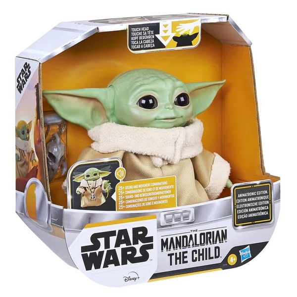 Grogu the Mandalorian, ou The Child, est un personnage de la série The Mandalorian qui a été créée et imaginée dans le monde de Star Wars. Il ressemble à une version enfantine du maître Yoda. La figurine animatronique faite par Hasbro est une réplique parfaite du personnage de la série, elle bouge et émet une combinaison de sons dont l’activation se fait au toucher de sa tête.