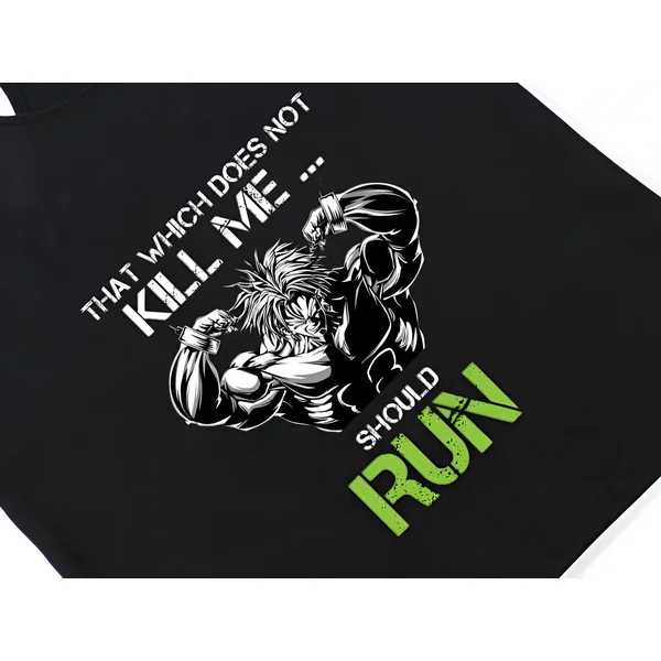 Ce stringer n’est pas seulement un vêtement ; c’est une déclaration. Le visuel de Broly, dans sa forme la plus redoutable, est un rappel constant de la puissance que vous pouvez atteindre. La phrase audacieuse « THAT WHICH DOES NOT KILL ME… SHOULD RUN » est un clin d’œil à la détermination qui anime les plus grands guerriers. Portez-le et laissez cette énergie déferler en vous, poussant chaque muscle à son paroxysme.