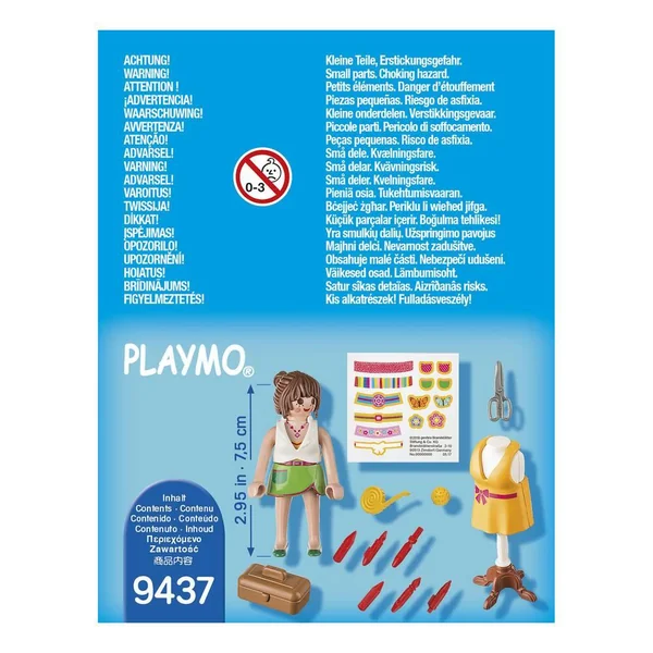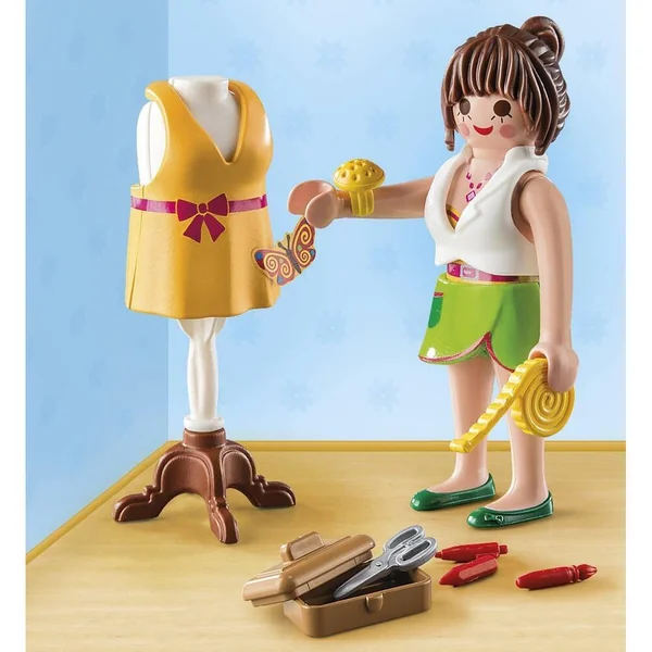 Le mannequin de couture peut être utilisé avec toutes les tenues. Le mètre ruban tient dans la main de la figurine. Le pique-aiguilles se fixe au bras de la figurine. Les vêtements peuvent être décorés grâce aux étiquettes détachables. L’ensemble comprend 1 personnage, 1 mannequin et des accessoires (autocollants, outils de couture, coffre…).