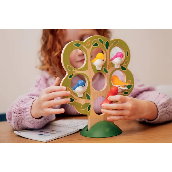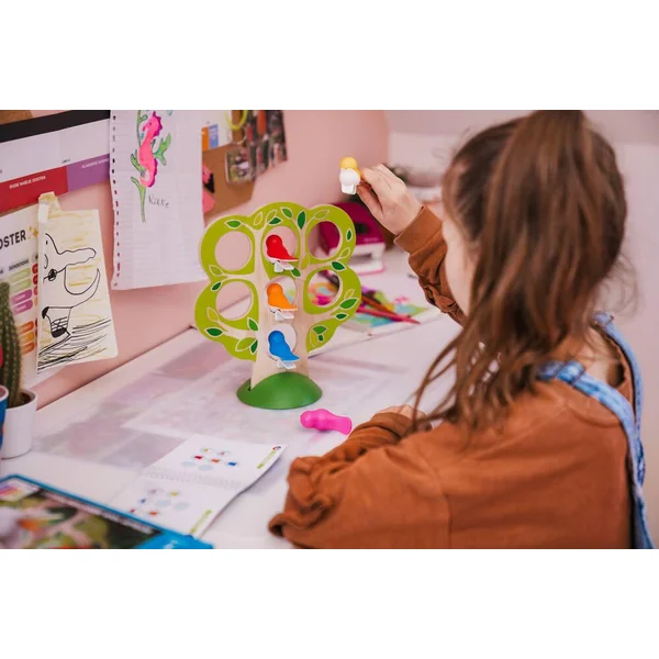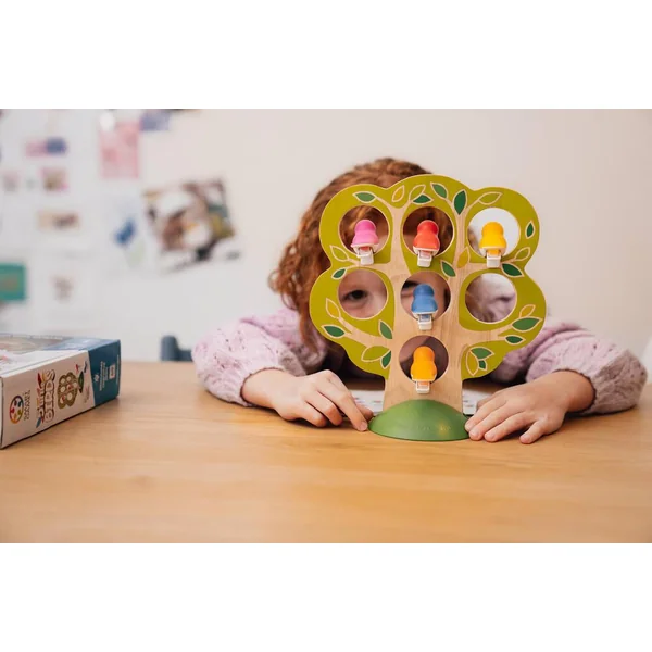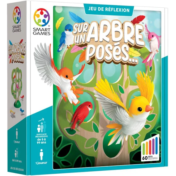 Les oiseaux cherchent leur nid dans l’arbre, mais ils ont besoin d’aide pour le trouver. Posez chaque oiseau de couleur différente, de face ou de dos, sur la bonne branche de l’arbre en suivant les indices fournis par chacun des soixante défis. Les niveaux les plus élevés donneront peu d’indices, rendant ce jeu plus complexe. Un jeu de réflexion qui fera s’envoler l’esprit de déduction des petits comme des grands.