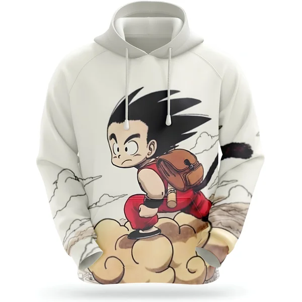 Enfourchez votre propre Nuage Magique avec ce sweat à capuche unique. Inspiré par les aventures du jeune Son Goku, ce vêtement est parfait pour les fans de Dragon Ball. Laissez l’esprit d’aventure et de découverte vous envahir. Affichant une image dynamique de Goku sur son fidèle nuage, ce sweat est une pièce de collection pour tout admirateur de l’œuvre d’Akira Toriyama. Adoptez ce style original et confortable au quotidien. Une pièce qui vous fera voler à travers vos journées.