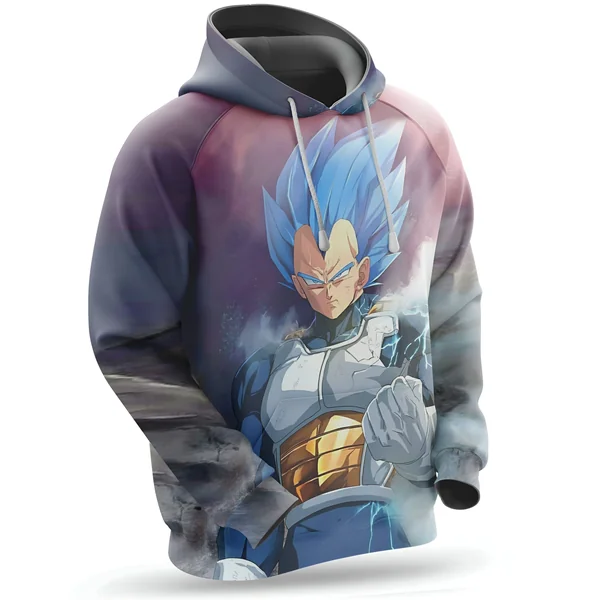 Ce sweat incarne l’esprit combattif de Vegeta, l’éternel rival de Goku. Son design met en avant le Prince Saiyan dans sa forme Super Saiyan Blue, symbole de puissance et de persévérance. Chaque détail, de la posture déterminée à la couleur vibrante de ses cheveux, est fidèlement représenté pour offrir une expérience immersive à tous les passionnés de Dragon Ball Super. Revivez les combats épiques et les transformations saisissantes avec ce vêtement qui célèbre la saga.