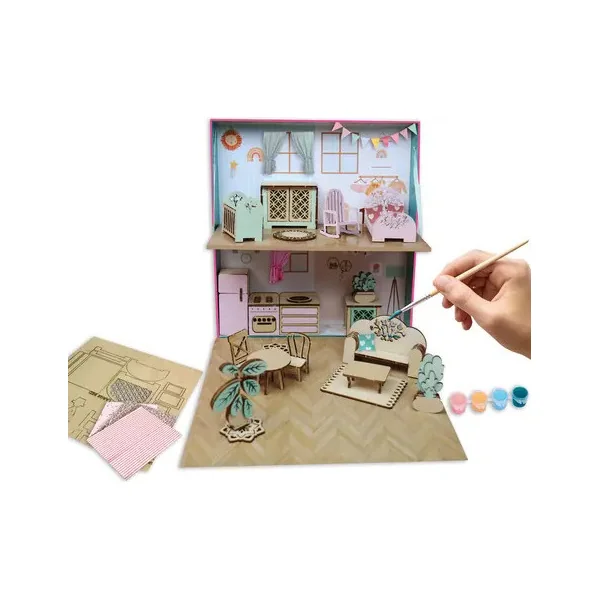 Créez votre propre Lovely World, un intérieur domestique dans une boîte entièrement imprimée que vous utiliserez pour le rangement. Les meubles en bois peuvent être assemblés, peints et décorés avec du tissu, du fil et des autocollants. Plongez dans un mini-univers douillet.