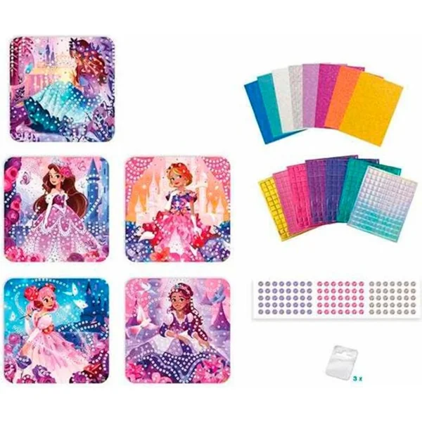 Les enfants décoreront 5 images attrayantes à l’aide de pièces en mousse. Suivez les instructions et collez progressivement des formes de mosaïque colorées dans l’image, puis des pierres qui donneront de l’éclat à l’image.