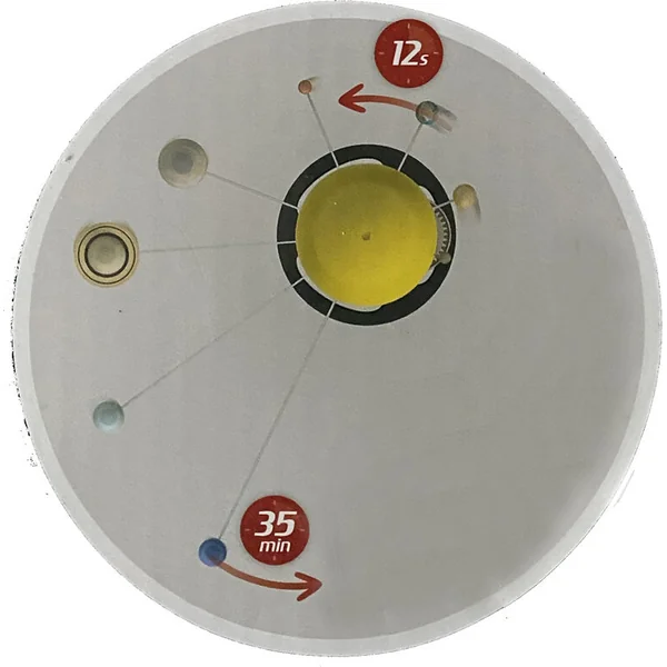 Il s’agit d’un ingénieux kit de construction, où grâce à un système d’engrenages, nous obtenons un modèle fidèle du système solaire avec des planètes en rotation et un soleil lumineux. Le système est alimenté par un petit moteur et toutes les planètes tournent autour du soleil à une vitesse correspondant à la réalité.
