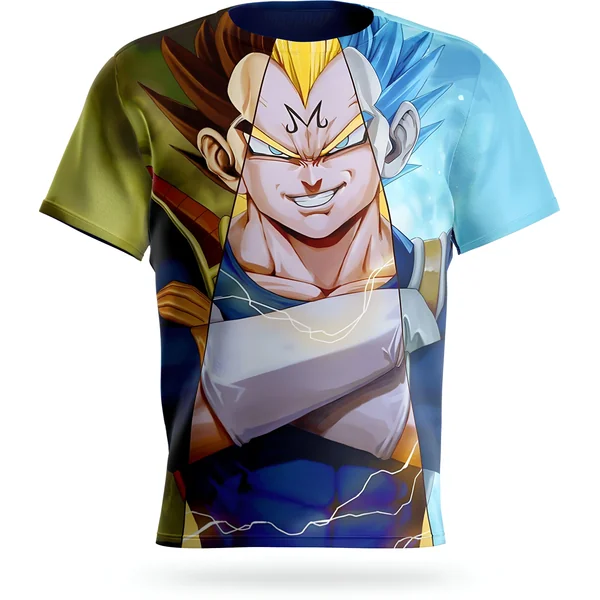 Les détails sont pensés pour refléter la saga : les cheveux en pics, le regard perçant, les couleurs caractéristiques de son armure, tout est là pour rendre hommage à ce personnage emblématique. Ce t-shirt n’est pas un simple vêtement, c’est une déclaration de fidélité au monde de Dragon Ball. Les fans apprécieront le soin apporté aux détails et la fidélité du design aux traits caractéristiques de Vegeta.