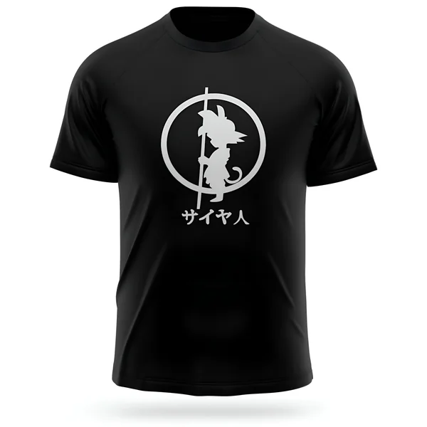 Au-dessous de la silhouette de Goku, le caractère japonais Saiyan est clairement affiché, tel un sceau de reconnaissance. Ce symbole n’est pas qu’une simple étiquette, mais l’affirmation d’une identité. Il est un rappel de la fierté, de la résilience et de la puissance brute qui caractérisent la race des Saiyans, guerriers nés pour se dépasser et atteindre de nouveaux sommets de force. Ce signe, discret, s’adresse aux connaisseurs, une marque d’appartenance à un groupe de fans avertis.