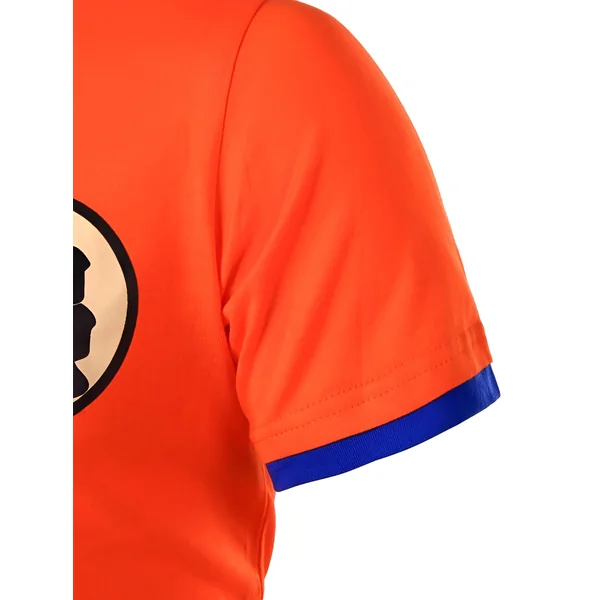 Ce t-shirt n’a pas été conçu dans un simple esprit esthétique, sa conception est faite pour vous accompagner dans toutes vos activités. Sa coupe a été spécialement étudiée pour offrir une grande liberté de mouvement, que ce soit pour des exercices intensifs ou pour les défis du quotidien. Le tissu, léger et respirant, vous permet de rester à l’aise, même pendant vos entraînements les plus poussés, tel un Saiyan repoussant sans cesse ses limites. Le col en V avec ses finitions bleu contrastant ajoute une touche distinctive.